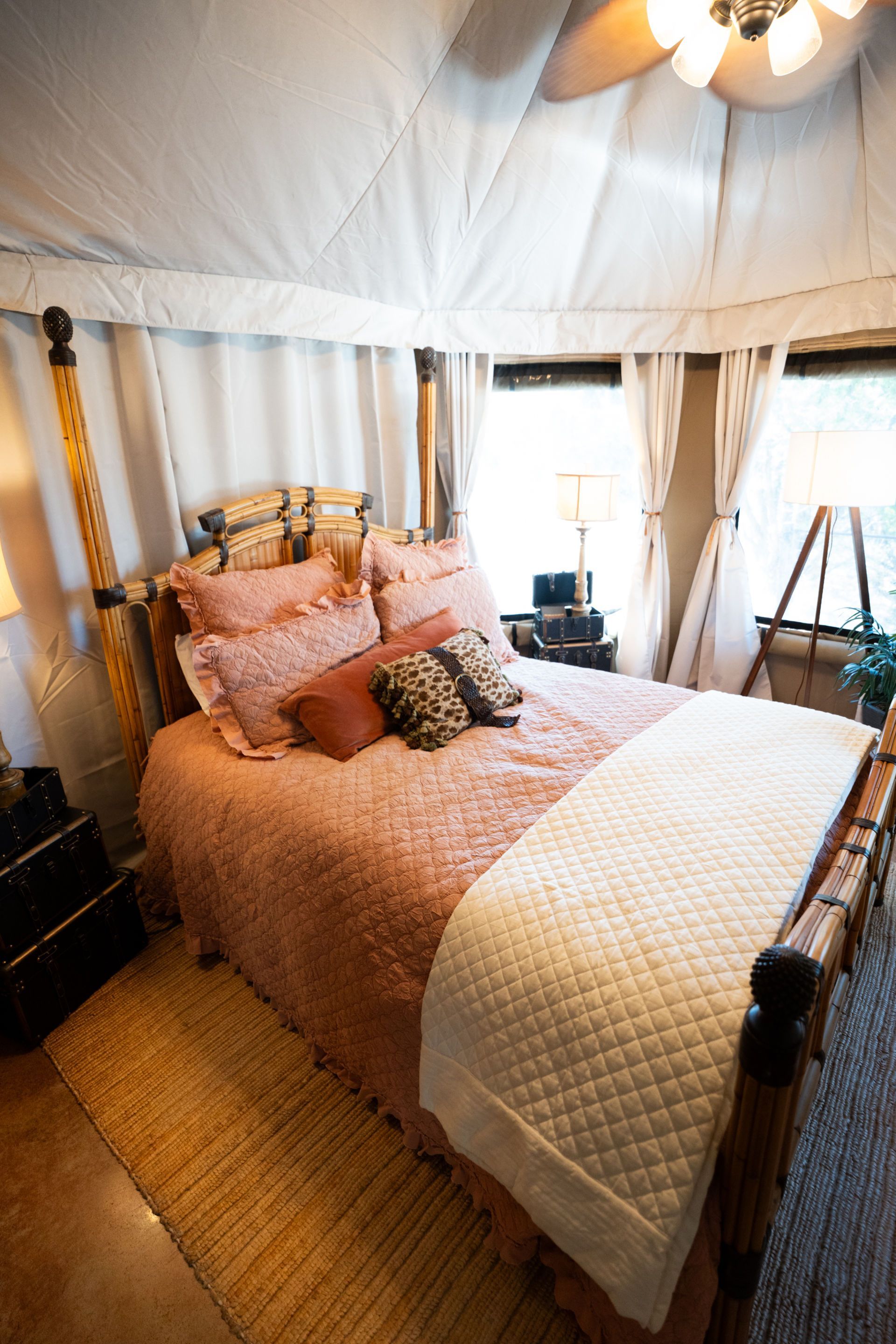 Equipped with the same carefully considered amenities as every safari tent, this one is quietly tucked into the woods, offering a more secluded feel and memorable sunset views.