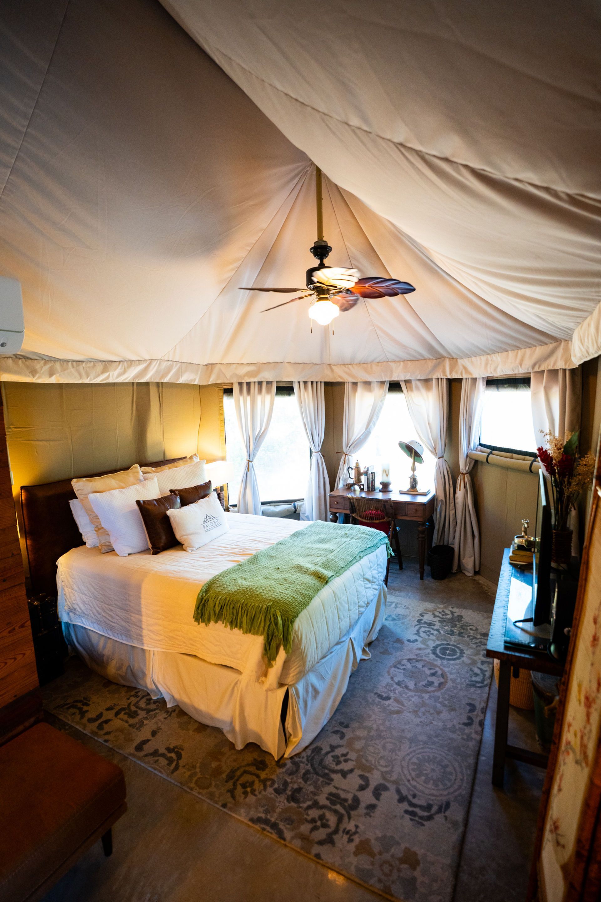 Appointed with the same carefully considered amenities as every safari tent, this one overlooks the pond, offering especially lovely sunrise and sunset views.